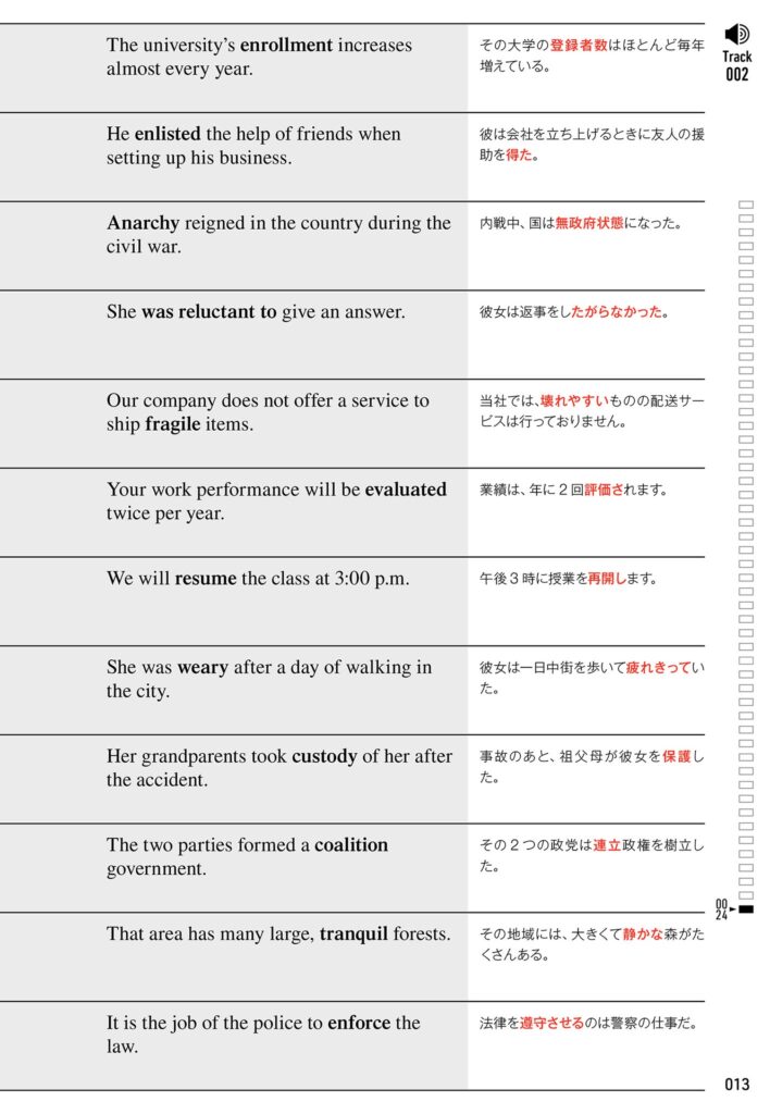 それ自体は大丈夫なのですが、その前にまず見開き2ページの単語と日本語訳をさっと見てください
